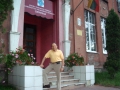 Ted Ashkenazy in front of the Schwabe School building, 2007 [Late-1930's photos of Schwabe School children]